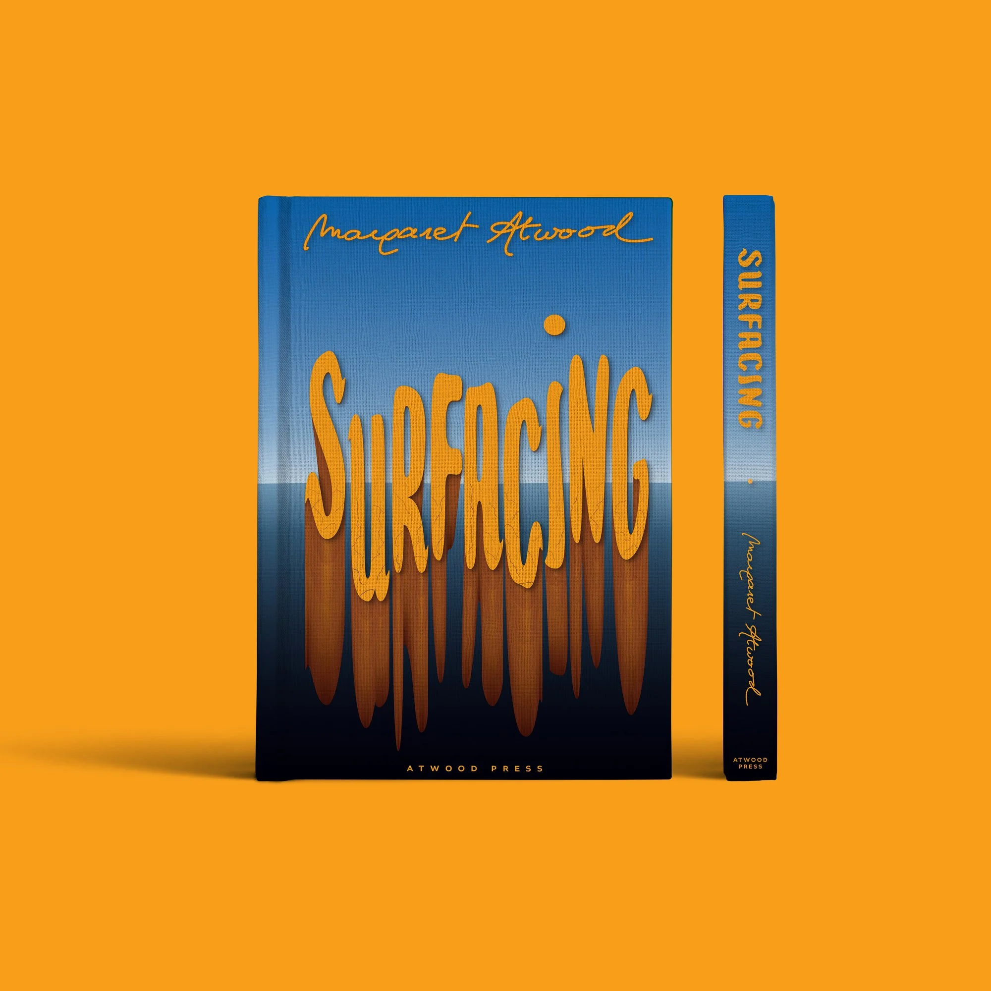 Surfacing reinterprets Margaret Atwood’s novel through custom typography, positioning lettering as the core narrative device rather than a decorative element. Informed by close reading of the text, the design translates psychological fragmentation and rebirth into a physical visual experience, where the title’s volumetric, vertical letterforms enact the strain and resolve of emerging from submersion.